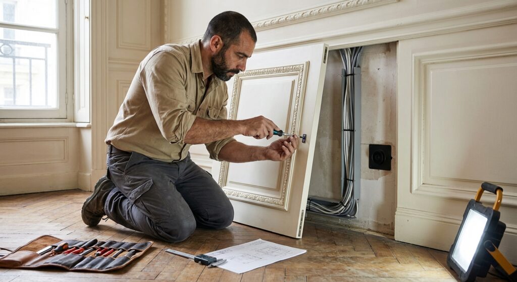 In practice, the reversibility requirement reinforces rather than conflicts with the concealment strategy described in this article. Boiserie panels fixed to timber grounds via screwed connections and removable cable conduit sleeves can be demounted completely, the cable infrastructure removed, and the wall surfaces returned to their pre-installation state with only minor filling and repainting at screw locations. This is not achievable with conventional smart home retrofit approaches that rely on surface-mounted cabling, clip-fixed conduit, or adhesive-bonded sensor mounts — methods that leave visible damage and residue when removed.